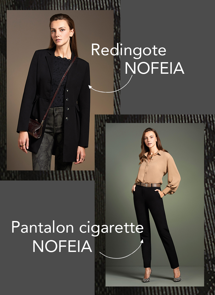 Nous avons développé pour vous un ensemble redingote + pantalon ultra chic et intemporel. Vous pouvez les porter ensemble ou séparément bien entendu, car autant la ligne de l’ensemble allonge les jambes et affine la silhouette, autant ils se marient à merveille avec n’importe quel autre haut ou bas. L’occasion pour vous de démultiplier les associations à l’infini ! Ils seront assurément des basiques de votre dressing, pour toutes les circonstances.
